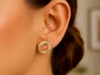 Elevate your elegance with these 14K yellow gold stud earrings, featuring interlocking trinity circles with a diamond-cut finish. Secured with push-back clasps, they offer both style and comfort, making them perfect for any occasion.